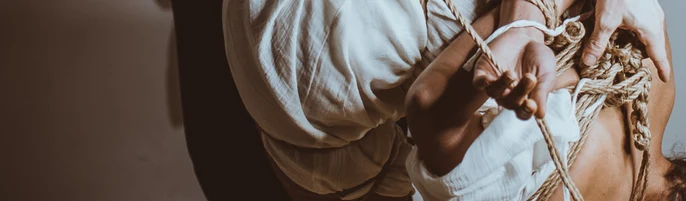 Tout d'abord, pour moi, il y a une différence entre le bondage et le shibari - c'est quelque chose que vous devez savoir. Le bondage est tout ce que vous pouvez utiliser pour restreindre quelqu'un, vous pouvez utiliser de la pellicule alimentaire, votre ceinture, des menottes, une corde de soie, et ainsi de suite. C'est simple. Il s'agit d'attacher quelqu'un pour le baiser. Le shibari fait partie du bondage, mais c'est aussi quelque chose d'unique et d'élaboré, qui n'est pas nécessairement lié au sexe, mais à la sensualité. Pour le shibari, je recommande d'utiliser les cordes classiques - les cordes de jute ou de chanvre - parce qu'elles ont certaines caractéristiques nécessaires pour le shibari. Elles ont une structure qui tient. En gros, quand on fait un shibari, on fait un premier nœud, et tout le reste est friction et tension, et pour cela, on a besoin des structures des cordes de chanvre ou de jute, et aussi ces cordes ne s'étirent pas comme la soie, ou comme les cordes de coton - donc elles maintiennent la tension comme elles sont censées le faire.